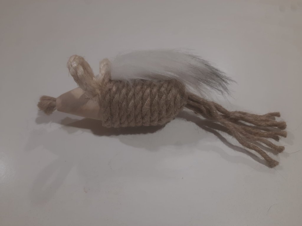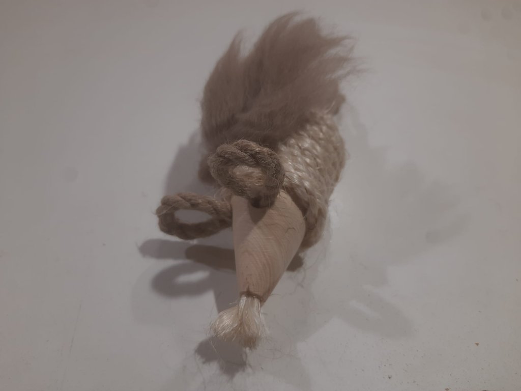 Julie je vyrobena z: Přírodní dřevo, umělá,nebo králičí kožešina, sisal 6mm, celková délka 20-23cm, tato hračka je vyrobena z přírodního dřeva a odolá i nejvíce drsnému hraní. Julie vypadá jako myš a vydrží dost na to, aby si ji váš miláček mohl užít více než jen párkrát ,ale aby vydržela co nejdéle.