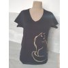 Silueta kočky je na pravé straně trička.